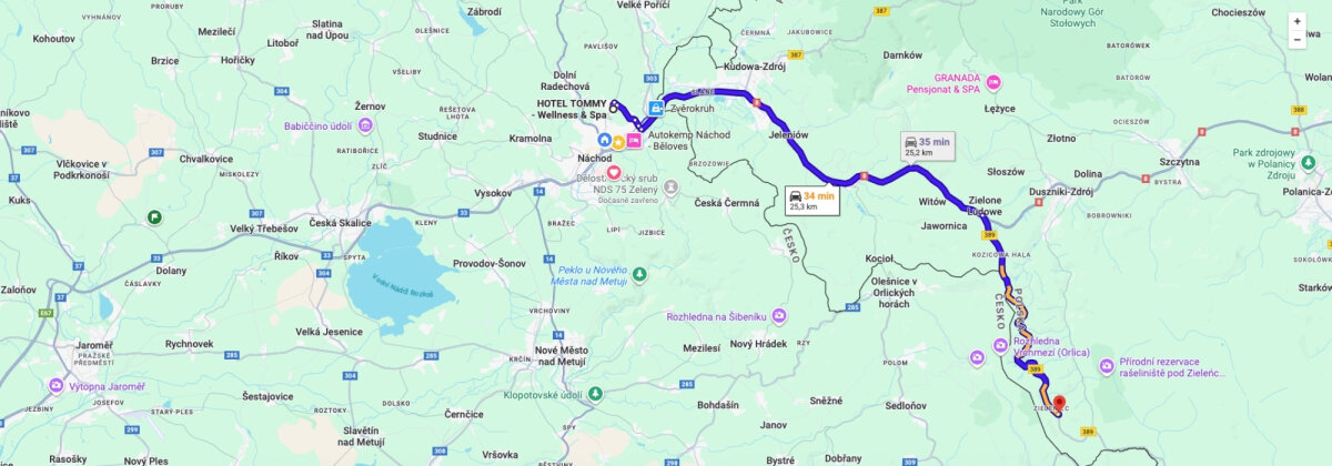 Trasa Hotel TOMMY - ZIELENIEC 25,3km / 34min